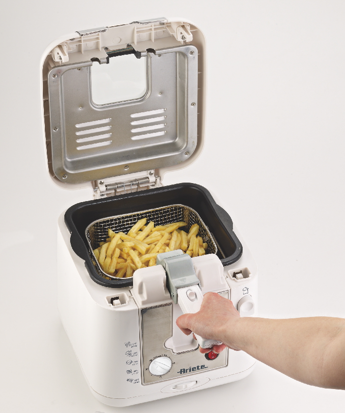 سرخ کن  فلزی  دارای  مخزن روغن  وسبد سرخ کن بوده که همه اجزاء آن از هم جدا شده و قابل شستشو هستند. ظرفیت مخزن روغن آن 2.5  تا 2.9 لیتر میباشد. ظرفیت سبد آن  800 گرم  است. یک پنجره دارد که براحتی داخل آن دیده میشود. دسته سبد طوری طراحی شده که پس از پخت سبد را براحتی میتوان بلند کرد. محهز به فیلتر دائمی است که  بدون اینکه بوی بدی بدهد مقدار غذای زیادی به سرعت سرخ می کند و بسیاز آسان تمیز میشود.