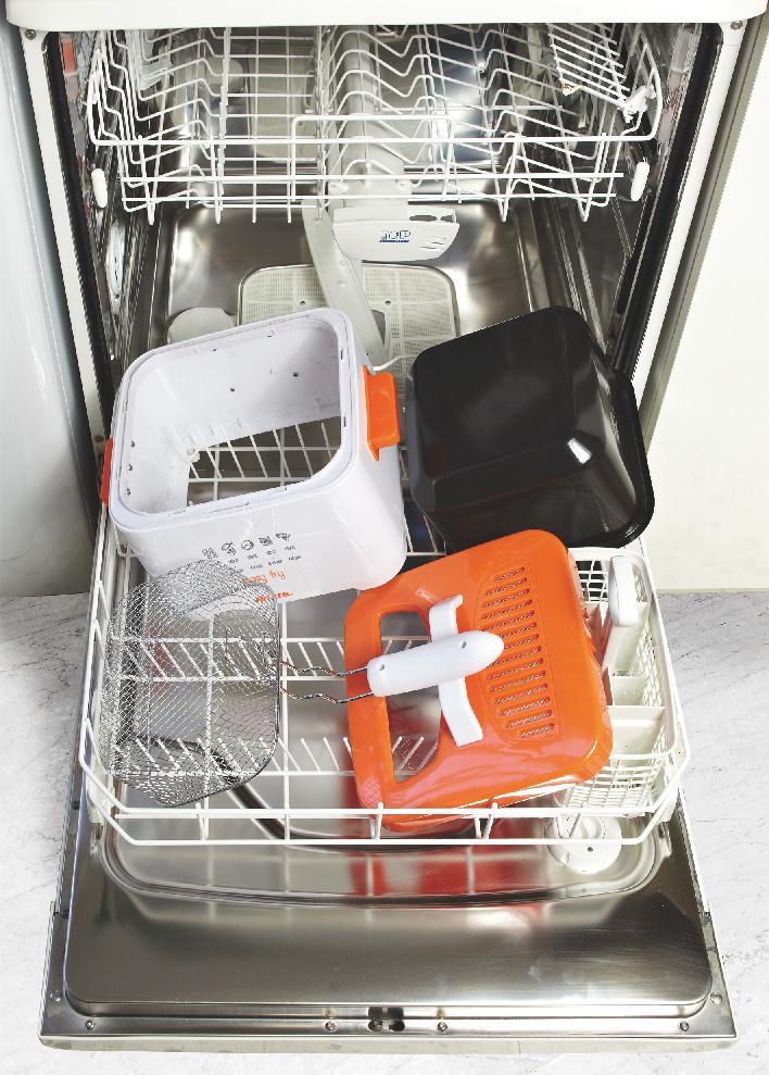 این دستگاه دارای ظرف روغن و سبد سرخ کن مجزا و قابل شستشو در ماشین ظرفشوئی می باشد.
