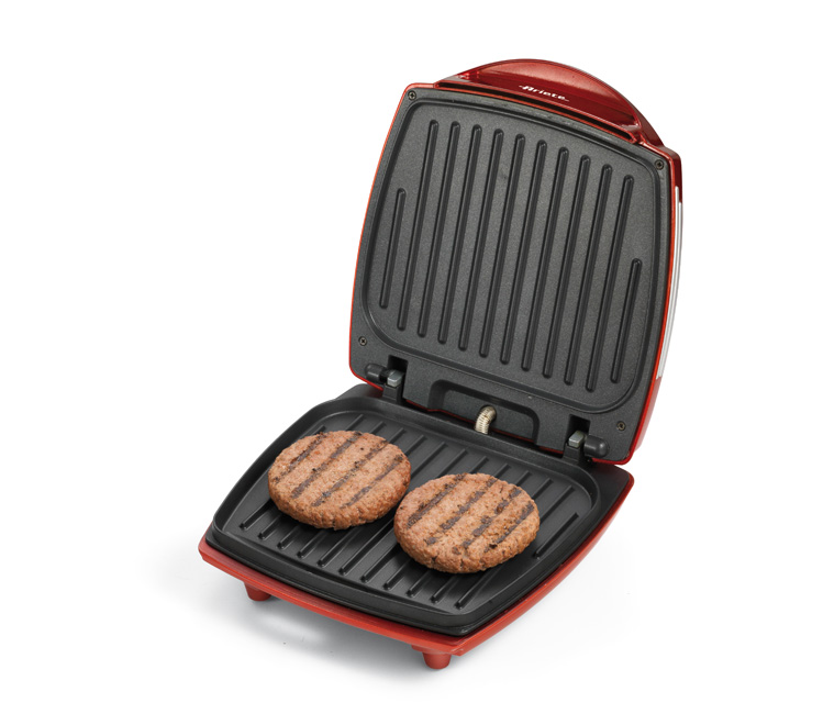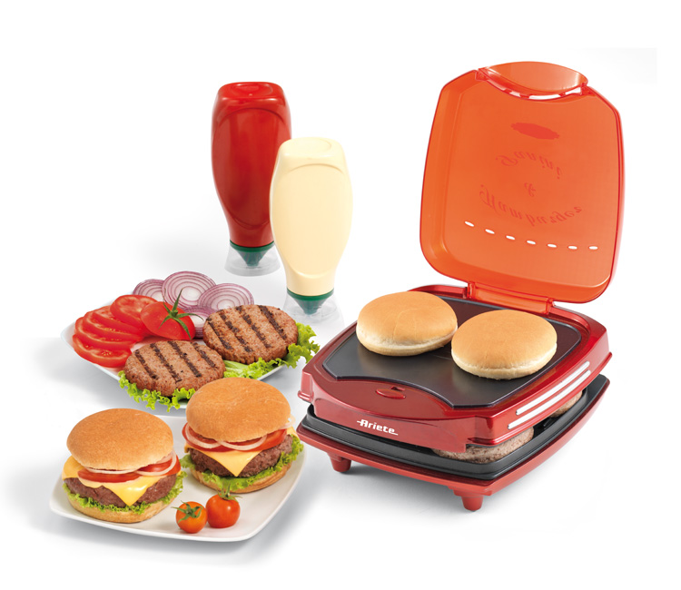 دو صفحه گریل مناسب برای تهیه دو عدد همبرگر، صفحه بالا گرمکن نان مخصوص همبرگر همزمان با پخت گوشت. همزمان ظرف 5 دقیقه 2عدد همبرگر حاضر می شود.
