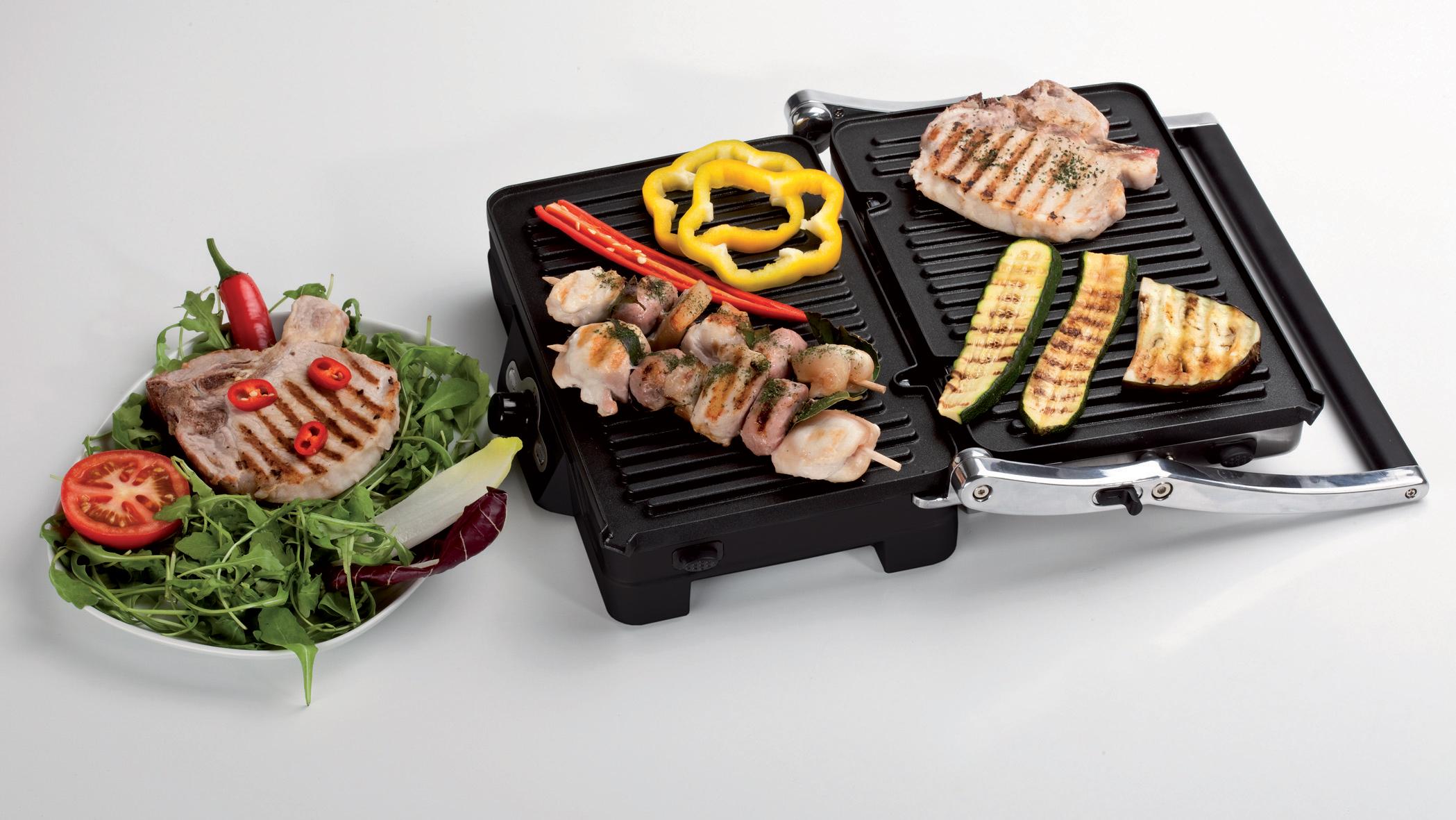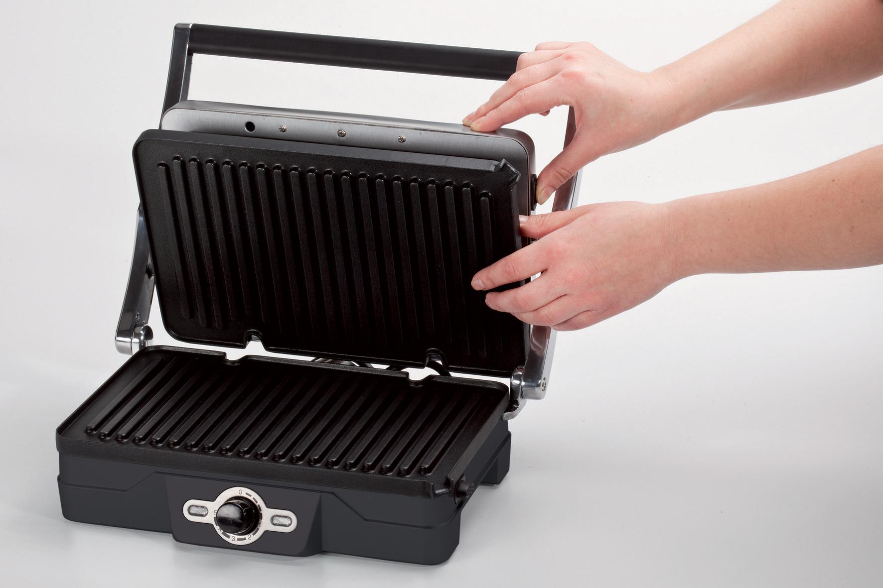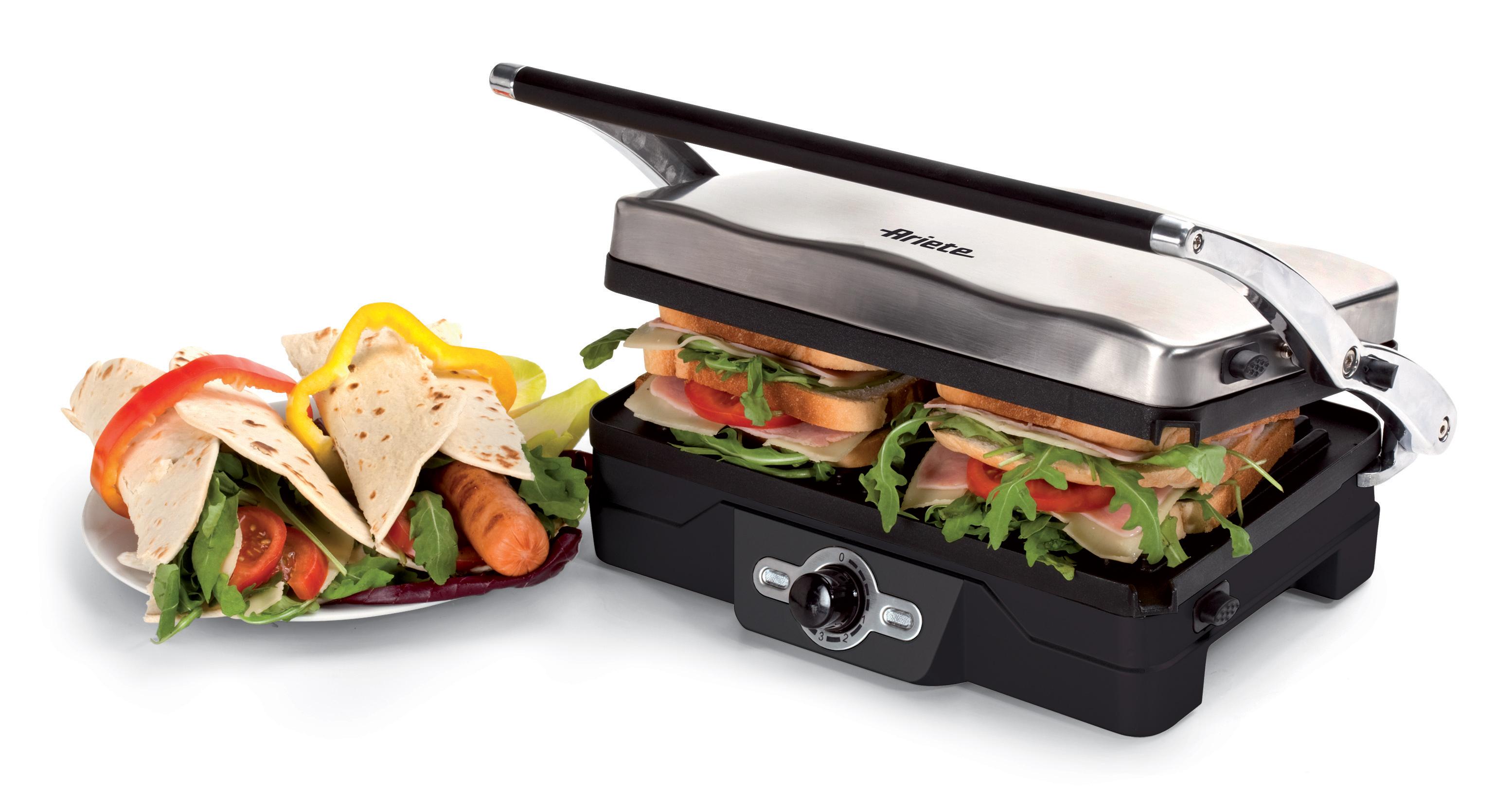 این ساندویچ ساز و استیک پز استیلس استیل مجهز به ترموستات قابل تنظیم جهت پخت و گم نمودن در حرارت های مختلف می باشد.